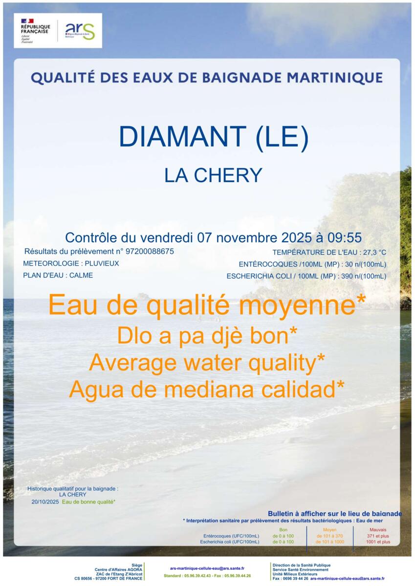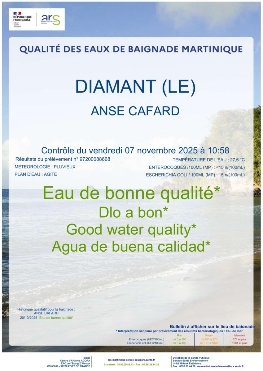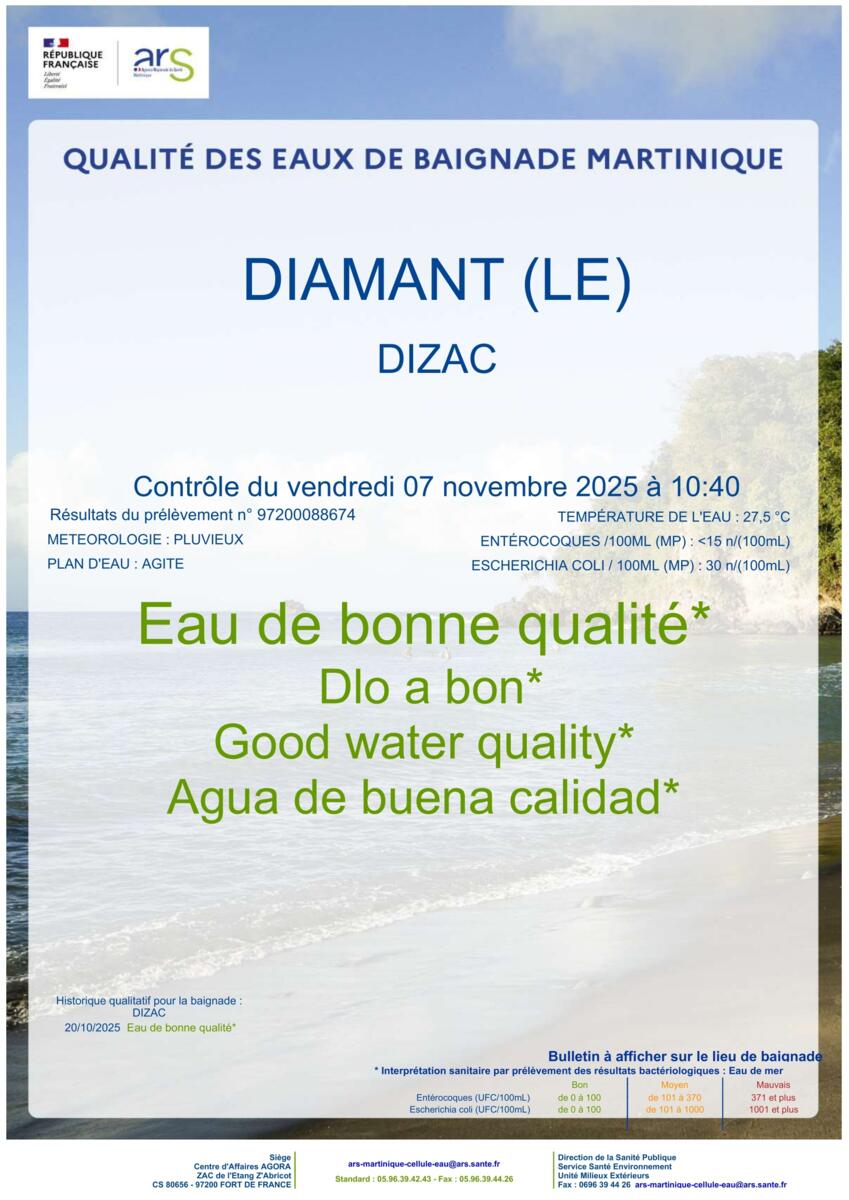 QUALITE DES EAUX DE BAIGNADE AU DIAMANT