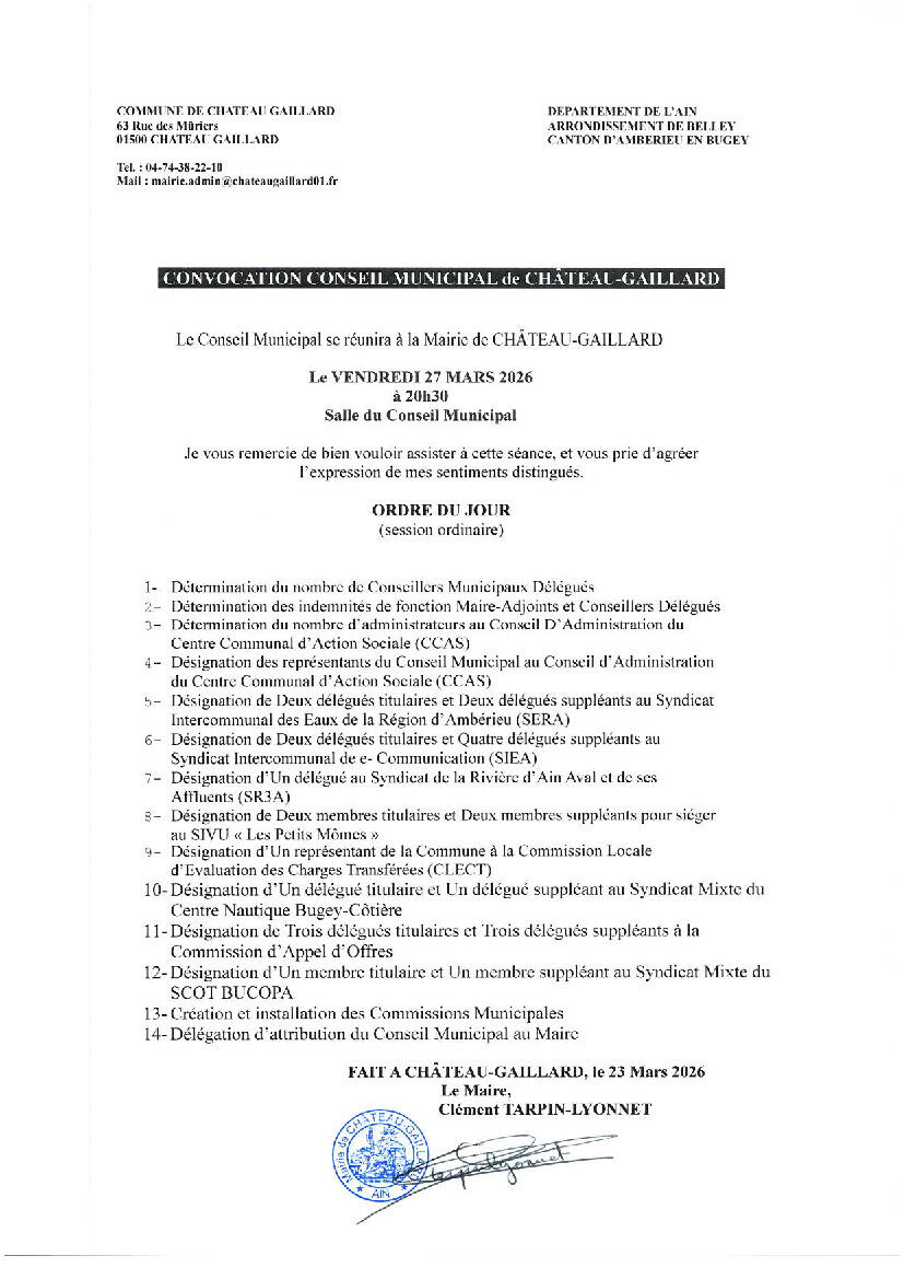 CONVOCATION CONSEIL MUNICIPAL SEANCE DU 27 03 2026