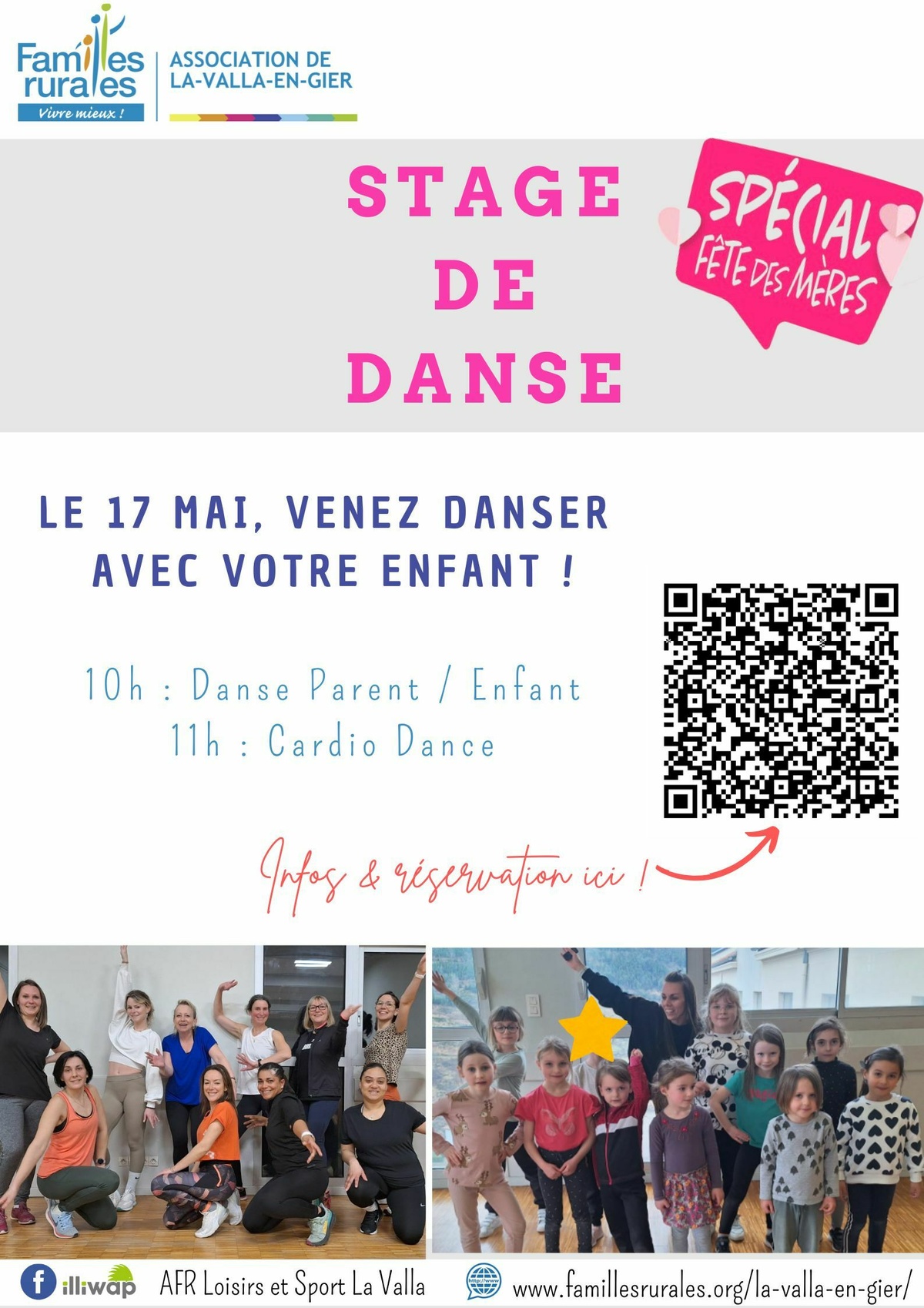 Inscriptions en ligne sur https://www.helloasso.com/associations/association-familles-rurales-de-la-valla-en-gier/evenements/stage-de-danse-special-fete-des-meres-1