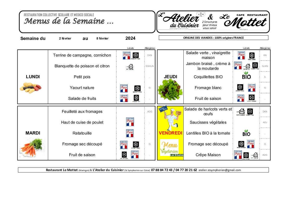 Restaurant scolaire - Menus