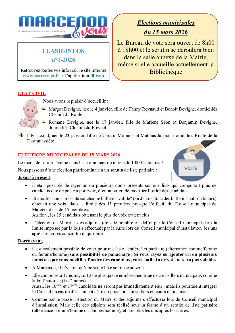 Flash-infos N°1 2026