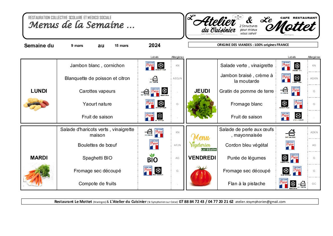 menus cantine SEMAINE 11 2026