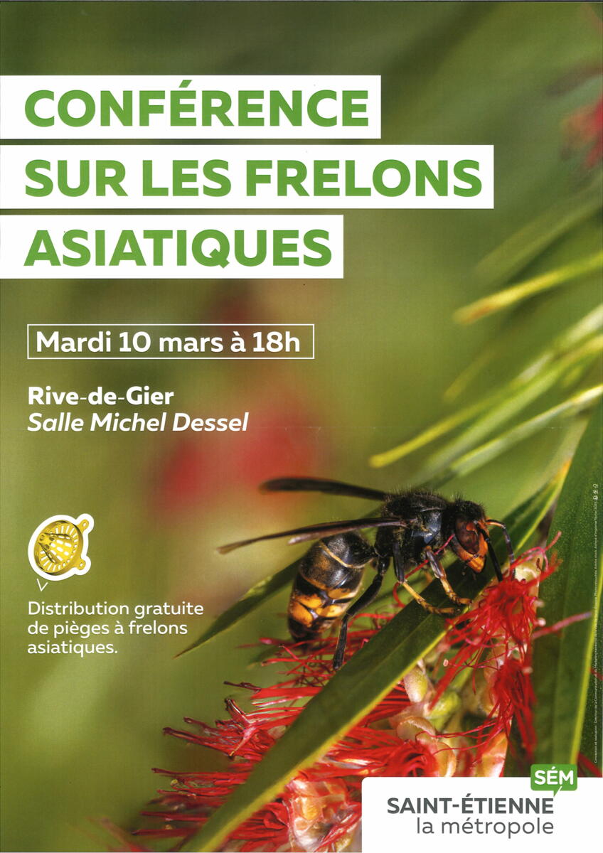 Frelons asiatiques 2/13/26 Conférence mardi 10 mars à 18h, à Rive de Gier (distribution gratuite de piège à frelons). Voir les affiches jointes.