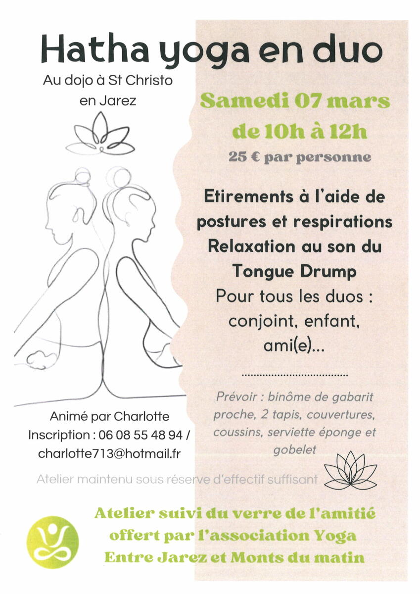 YOGA - stages 1/6/26 L'association Yoga Entre Jarez et Monts du Matin vous propose 2 stages : Source : Mairie de Marcenod