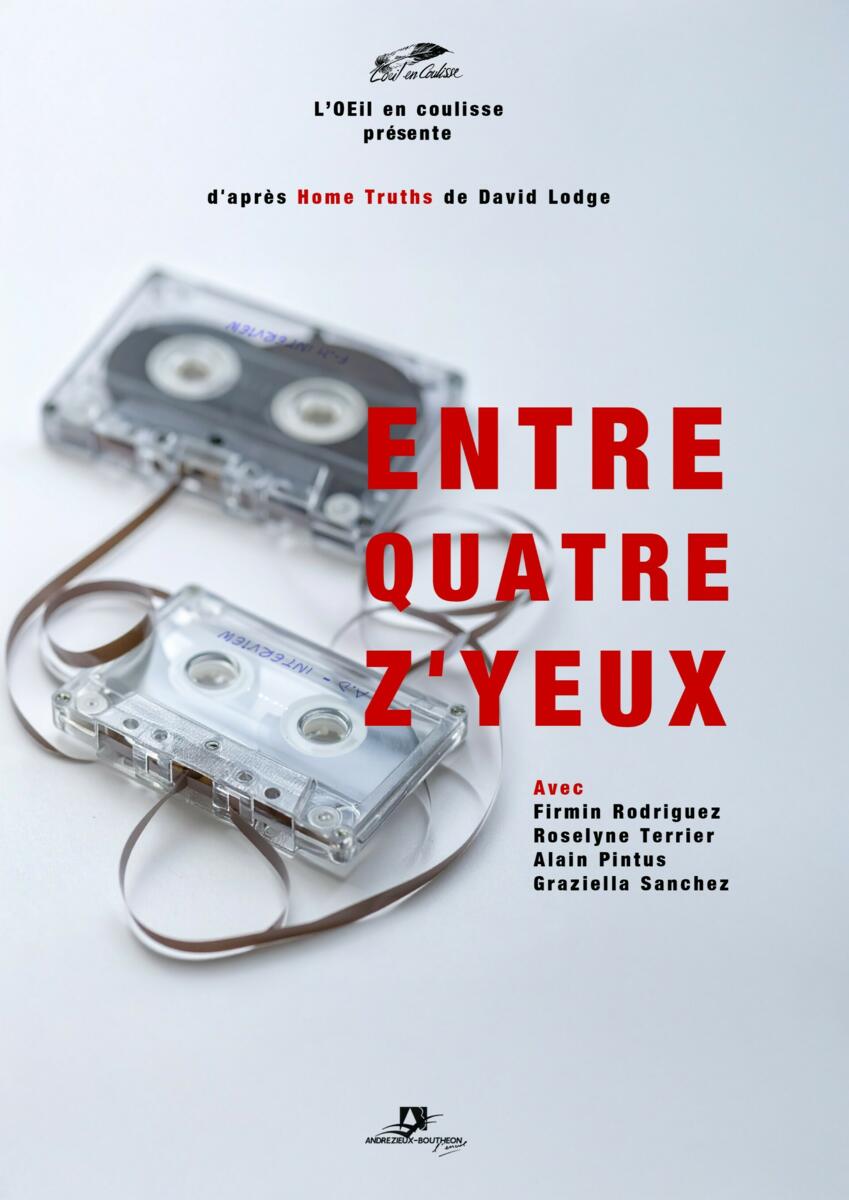 Pour le plus grand plaisir des spectateurs Andréziens-Bouthéonnais, la compagnie de l'Oeil en coulisse vous propose une soirée spectacle, samedi 28 mars à 20 h au Théâtre du Parc. Titre : Entre 4zyeux, adaptation de la pièce Les quatre vérités de David Lodge. Tarif : 10 €. Réservations et renseignements au 06 50 35 32 50.