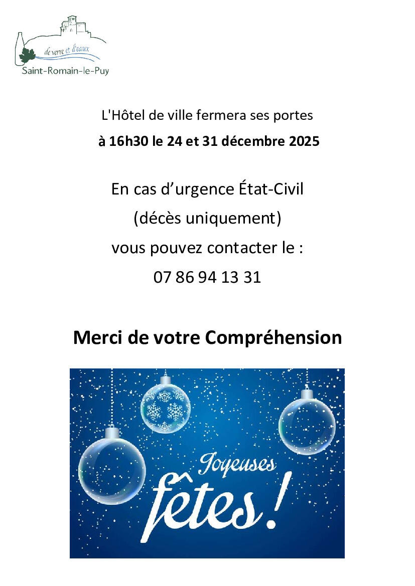 Your town hall / News / Fermeture exceptionnelle de la Mairie