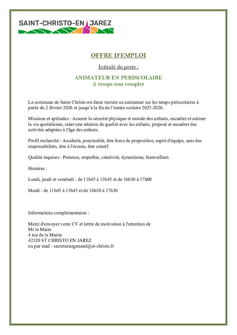 Your town hall / News / Offre d'emploi animateur périscolaire