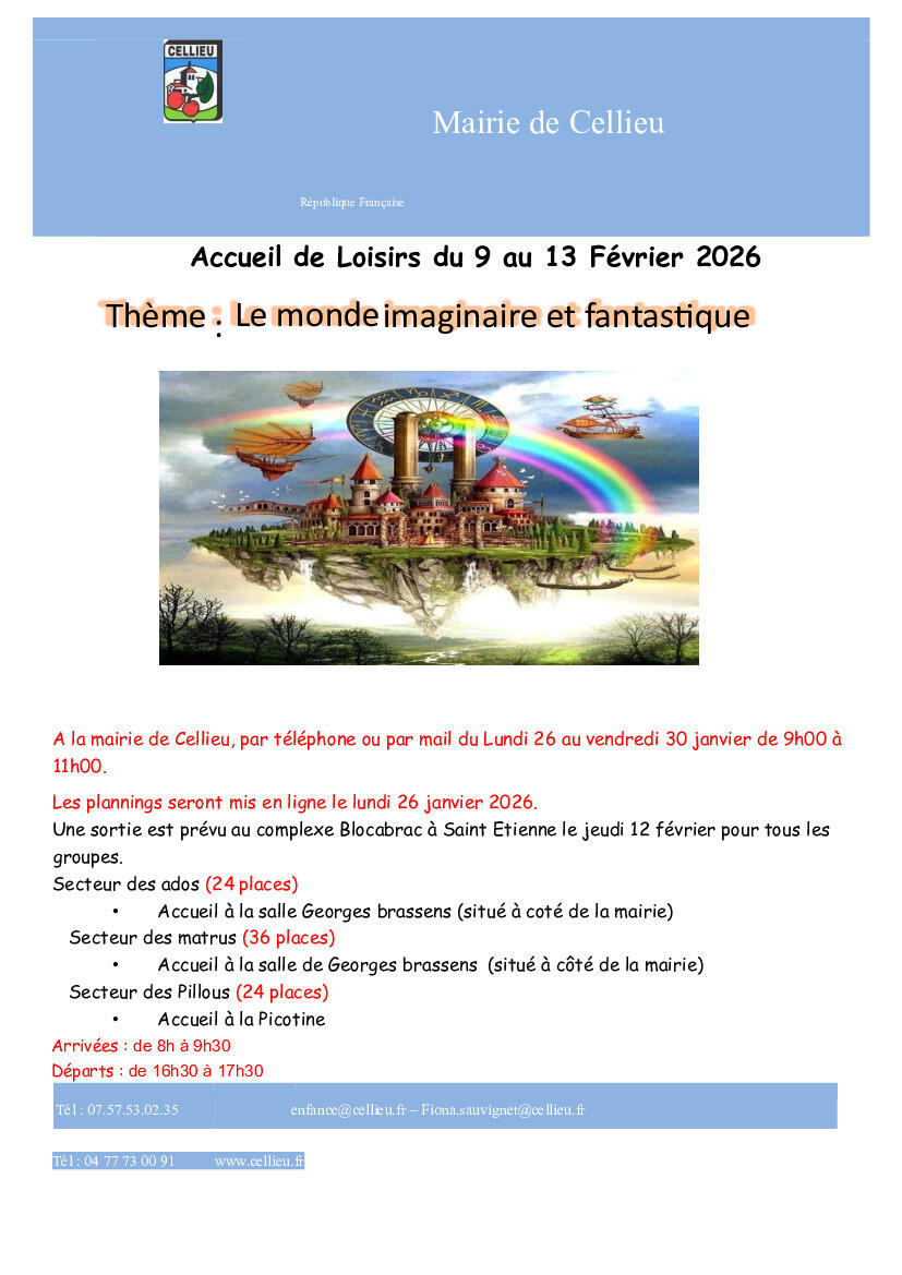 Inscriptions pour centre de loisirs du 9 au 13 Février 2026: