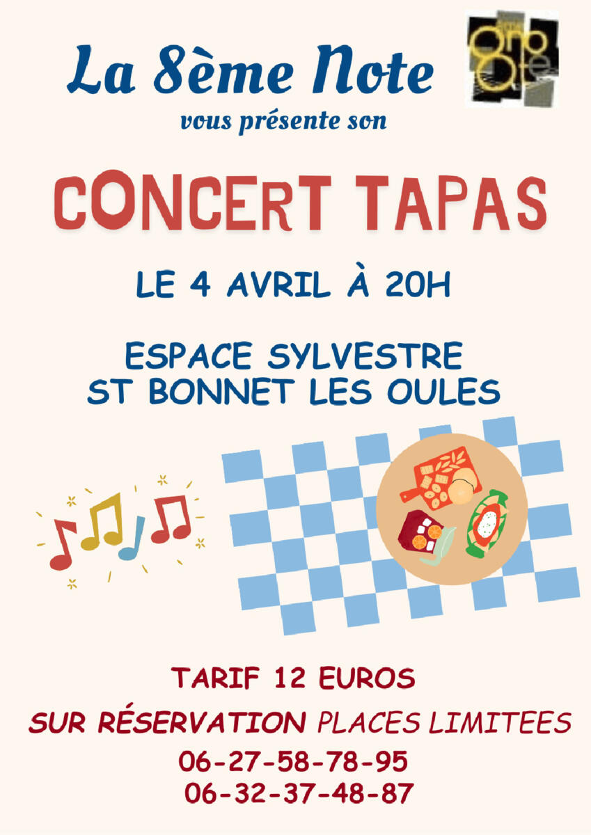Venez en famille ou entre amis, pour une agréable soirée le vendredi 4 avril, avec concert et dégustation de tapas! Places limitées : pensez à réserver!