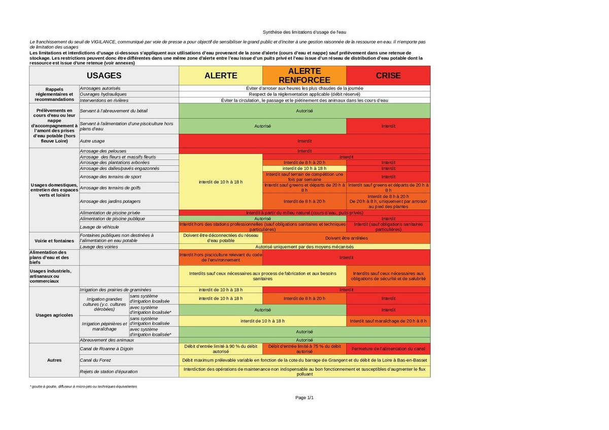 Des limitations d'usage de l'eau sont mises en place, merci de les respecter.