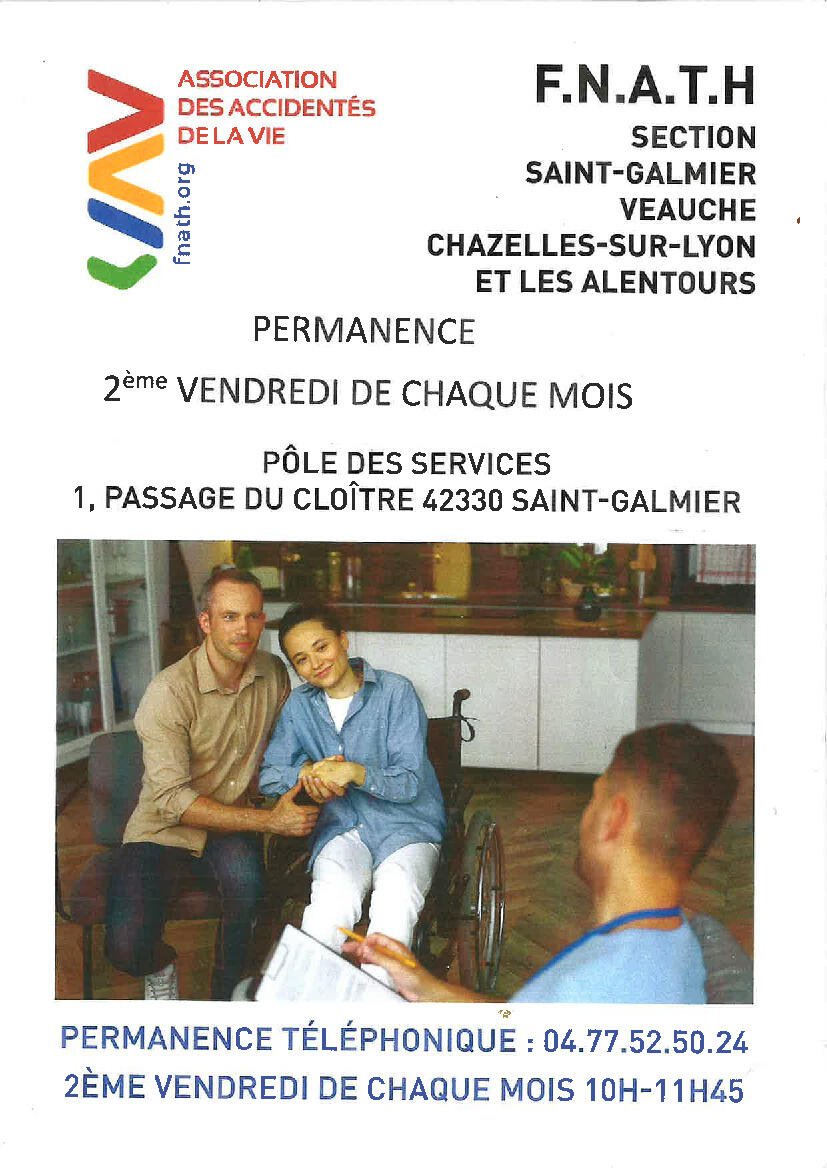 la FNATH Fédération Nationale des Accidentés du Travail et Handicapés tiens permanence les 2èmes vendredi de chaque mois à Saint Galmier