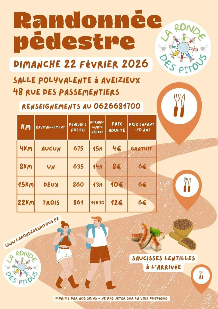 Randonnée de 4km à 22 km accompagnée de saucisses lentilles à l'arrivée