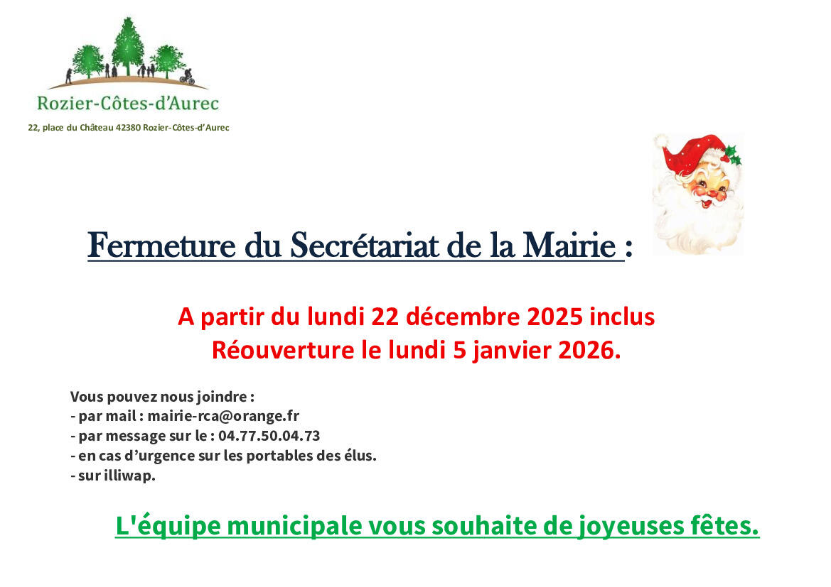 Fermeture du secrétariat de la Mairie pendant les fêtes
