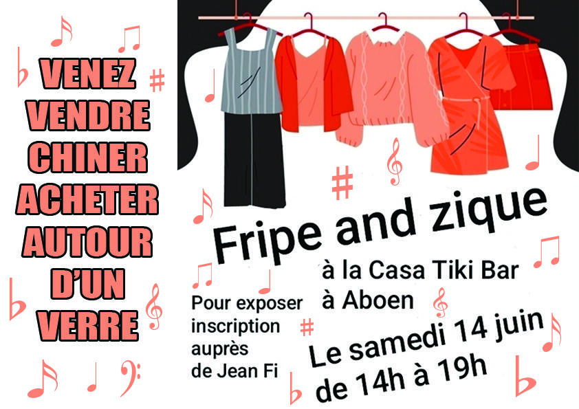 FRIPES ET ZIK 5/18/25 A la Casa Tiki Bar : Venez vendre, chiner, acheter. Samedi 14 juin de 14h à 19h.