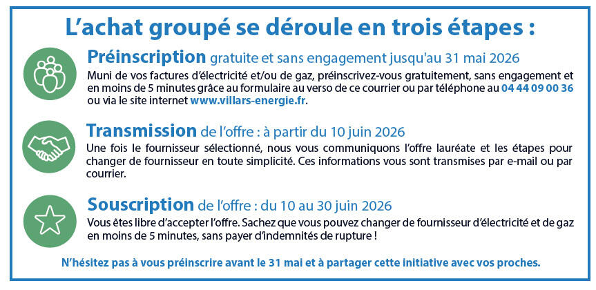 Dans ce cadre, la commune invite les habitants du territoire et de ses alentours à se pré-inscrire gratuitement et sans engagement jusqu'au 31 mai 2026 sur le site www.villars-energie.fr