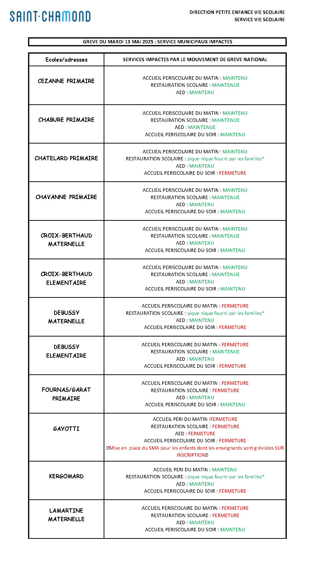 Indépendamment de notre volonté, un mouvement de grève est annoncé pour la journée du mardi 13 mai 2025.