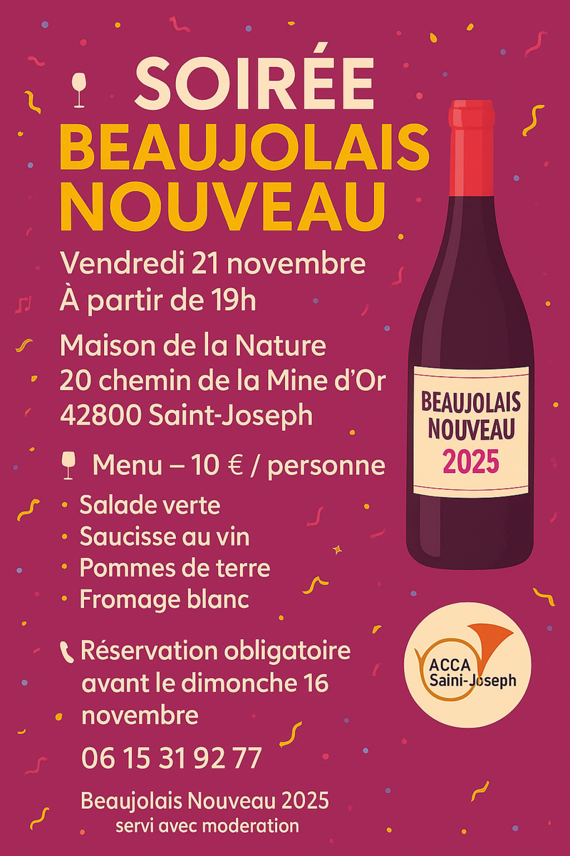 soirée beaujolais nouveau est organisée par l'ACCA de Saint-Joseph.
