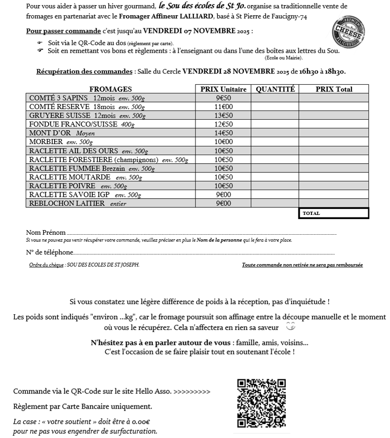 Message du Sou des Écoles de St Joseph