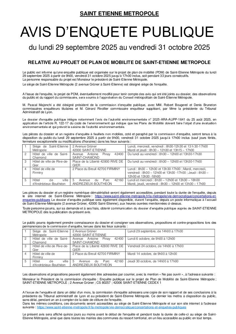 ENQUETE PUBLIQUE - PLAN DE MOBILITE