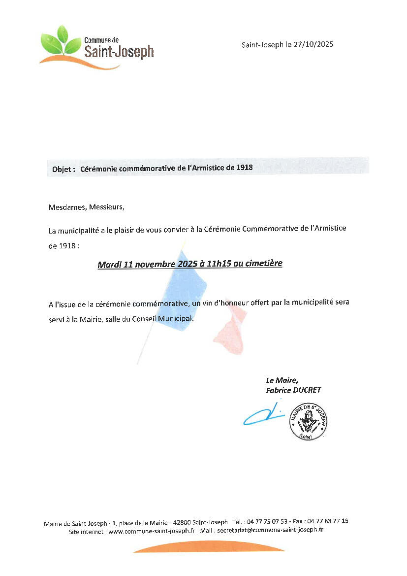 INVITATION A LA CEREMONIE DE COMMEMORATION DU 11 NOV. 1918