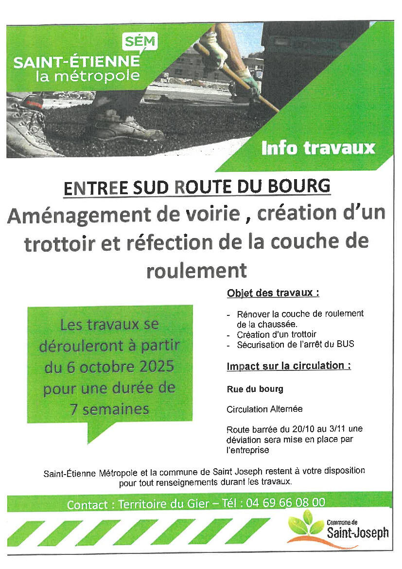 INFOS TRAVAUX entrée sud Route du Bourg
