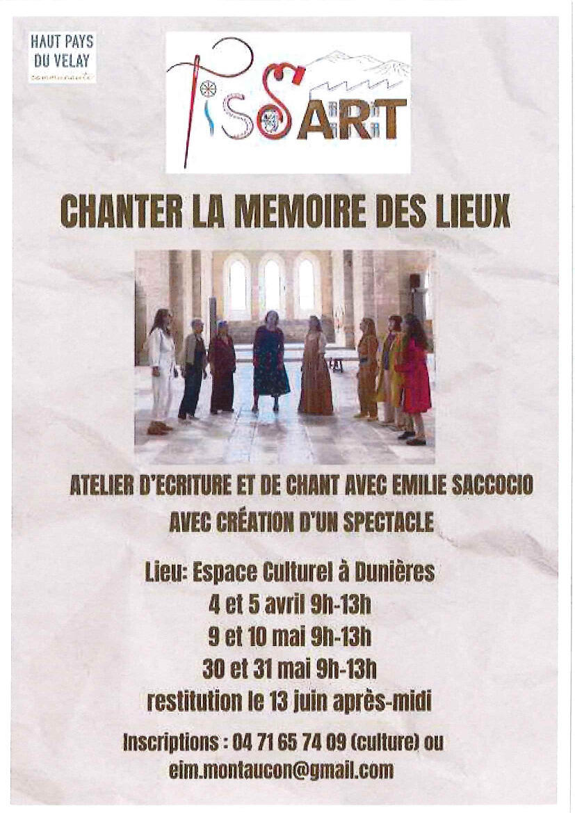 Un Atelier d'écriture et de chants proposé par Haut Pays du Velay Communauté dans le cadre d'un projet EAC (Éducation action culturelle) encadré par Emilie Saccocio.