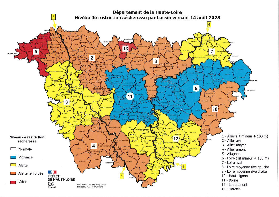 La situation hydroclimatique se dégrade. Les débits des cours d’eau continuent de baisser fortement. Les rares orages ne sont pas de nature à recharger les masses d’eau souterraines et de relever des débits des cours d’eau.
