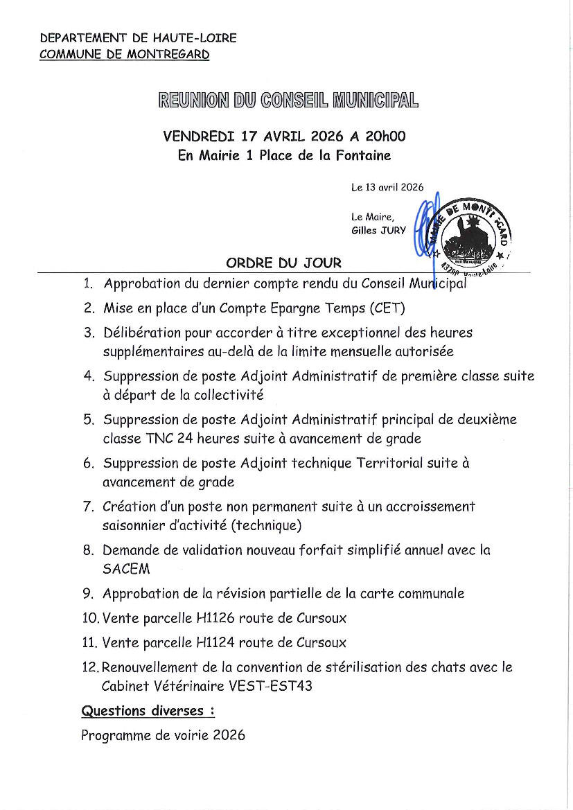 Prochain Conseil Municipal - Mairie de Montregard