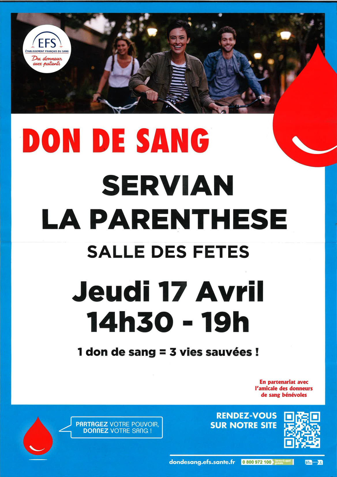 Your town hall / News / Don de Sang - Servian le jeudi 17 avril