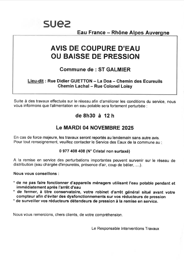 Relevé des compteurs d'eau entre le 01 et 05/12