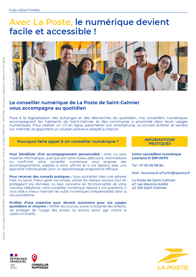 Le conseiller numérique de La Poste de Saint-Galmier vous accompagne au quotidien !