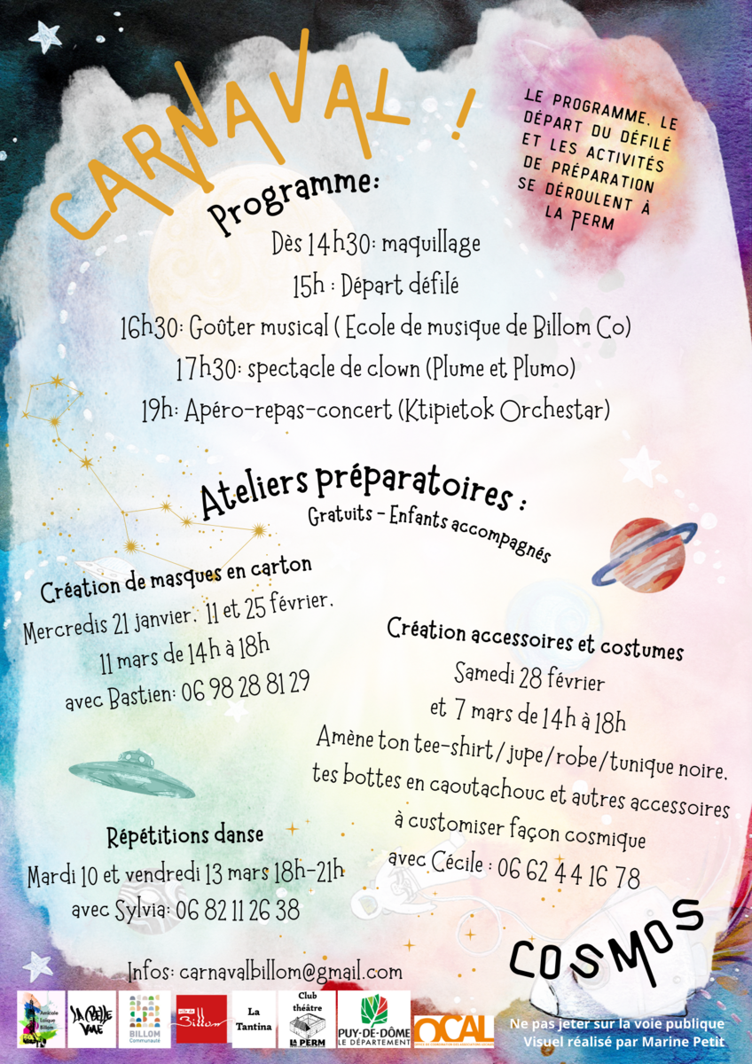 - Viens fabriquer ta cape systéme solaire, ton jet-pack intergalactique, ton serre-tête alien, ta soucoupe volante personnelle. Améne ton T-shirt/jupe/robe/tunique noire à customiser en Galaxie et tes bottes en caoutchouc et autres accessoires à customiser façon cosmos!!! Les samedis 28 février et 7 mars de 14h à 18h avec Cécile Titupröne. Inscription au 06.62.44.16.78.