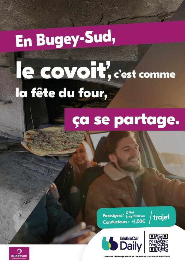 BONNE NOUVELLE ! Le partenariat avec BlaBlaCar Daily, la plateforme de covoiturage du quotidien, est renouvelé. La communauté de communes Bugey-Sud continue de financer vos trajets domicile–travail. En 2026, le covoiturage poursuit ainsi sa progression sur le territoire.