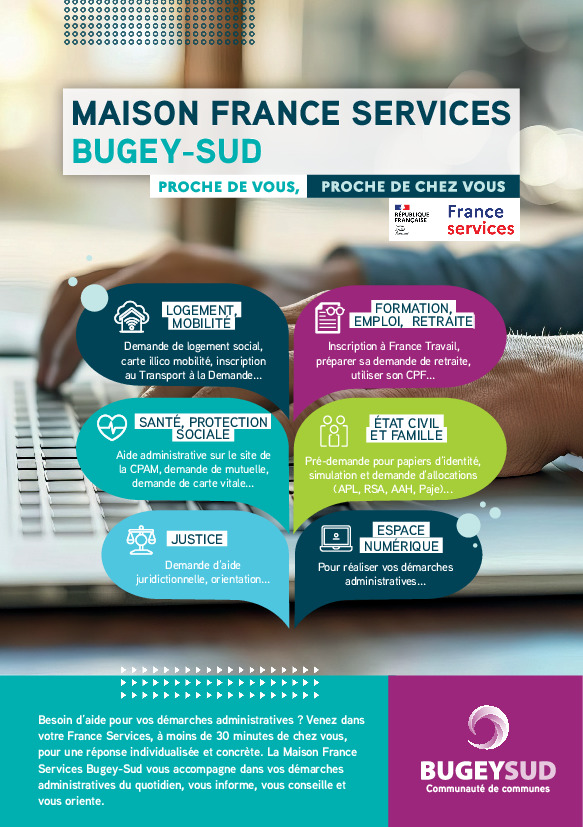 Nous vous rappelons que la Maison France Services Bugey-Sud vous accueille AVEC rendez-vous dans plusieurs communes du territoire :