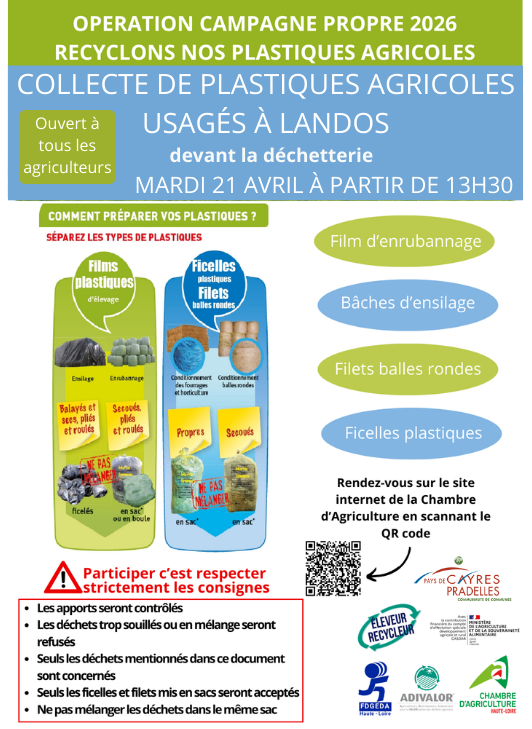 Home / Agenda / ♻️ Collecte de plastiques agricoles à Landos – Opération Campagne Propre 2026 ♻️
