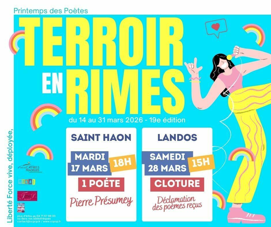 Dans le cadre du Printemps des Poètes, le territoire accueille la manifestation Terroir en rimes, dédiée à la poésie.