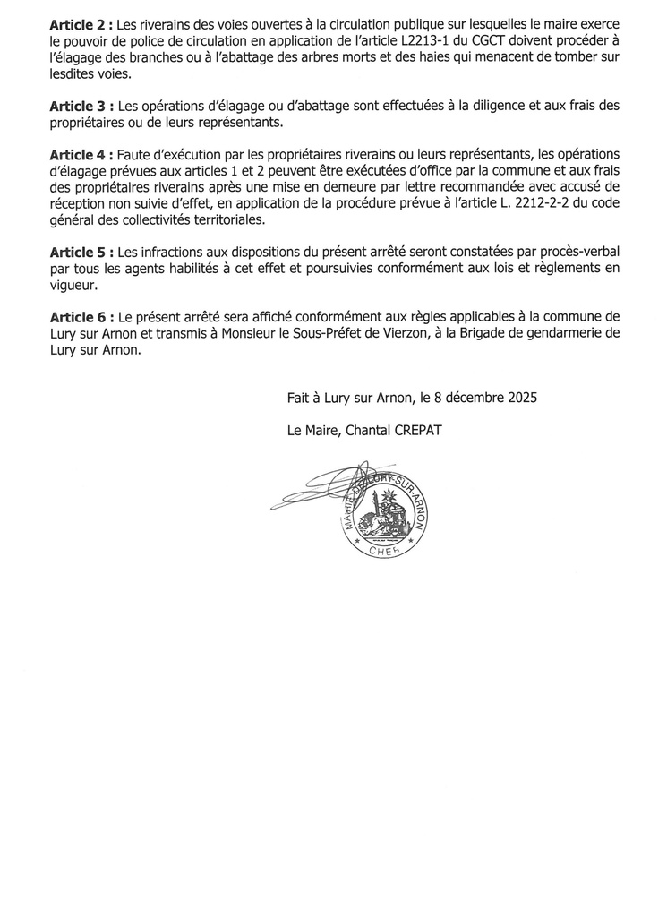 ARRÊTÉ MUNICIPAL DU 8 DÉCEMBRE 2025