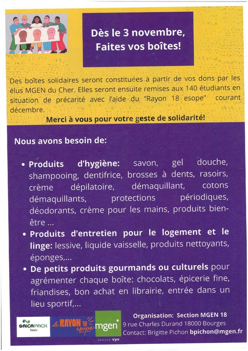 Grande collecte organisée par la section MGEN 18 au profit des étudiants du Cher en situation de précarité