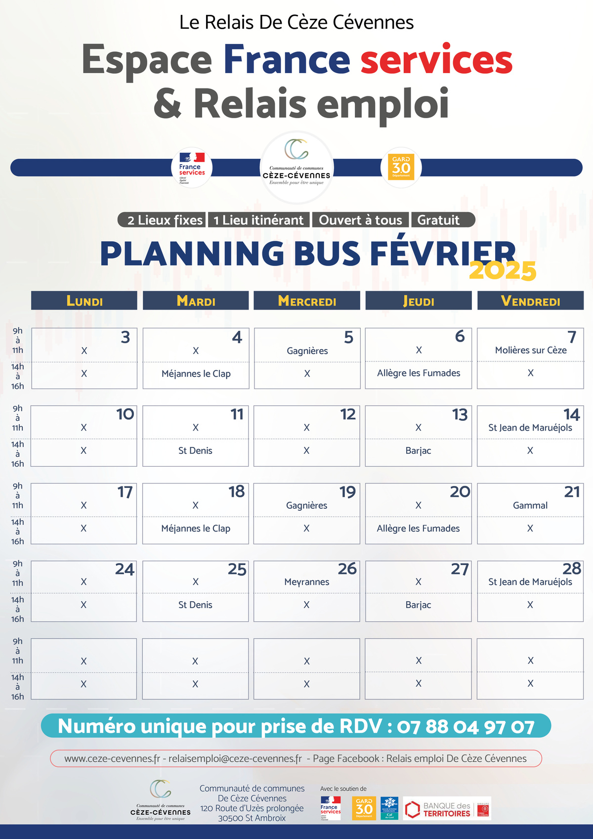 Retrouvez ci dessous le planning du bus informatique pour le mois de février