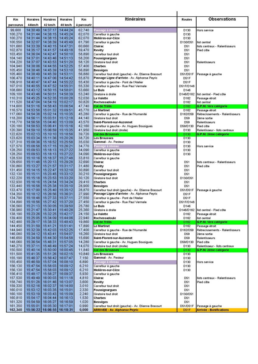 • Les horaires de passage des coureurs sont à retrouver ci-dessous