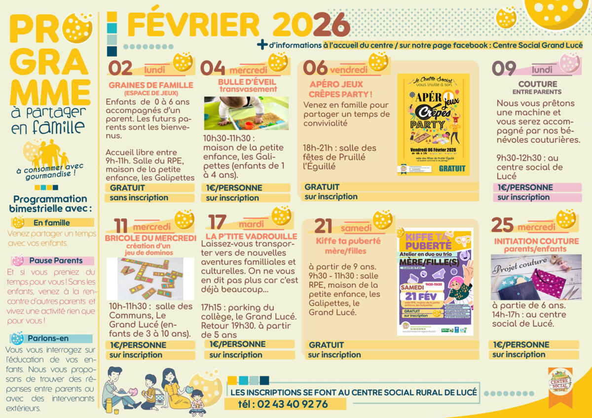 Programme "à partager en famille " janvier / février 2026 avec :