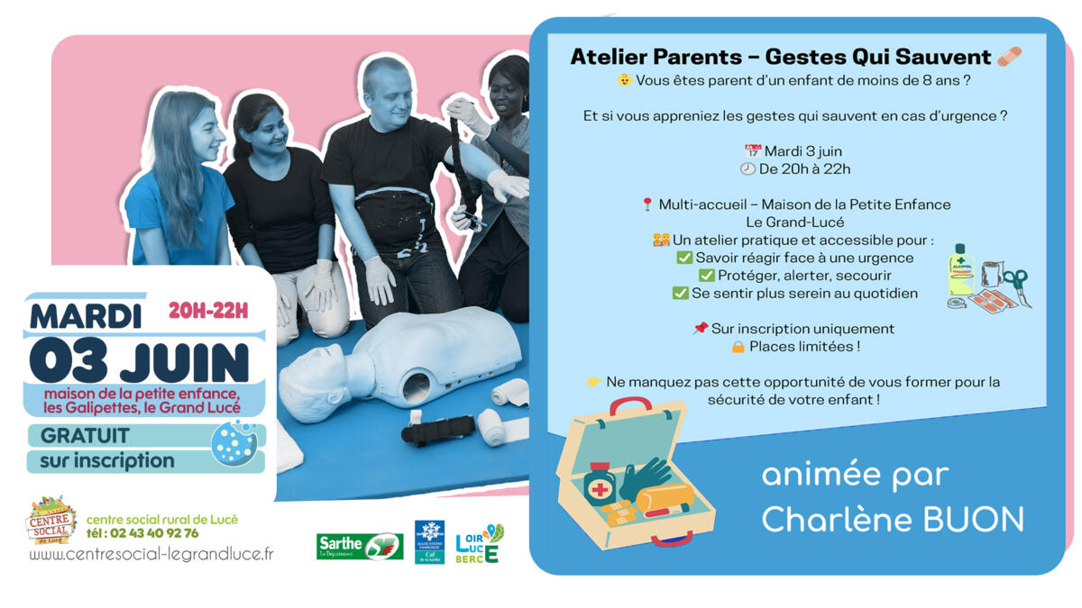 Atelier parents : Les gestes qui sauvent ! 5/23/25 Mardi 3 juin à la maison de la petite enfance de 20h à 22h
