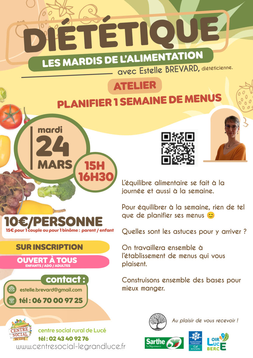les MARDIS de l'alimentation au centre social : 3/24/26 Mardi 24 mars de 15h à 16h30 Source : Centre social de Lucé