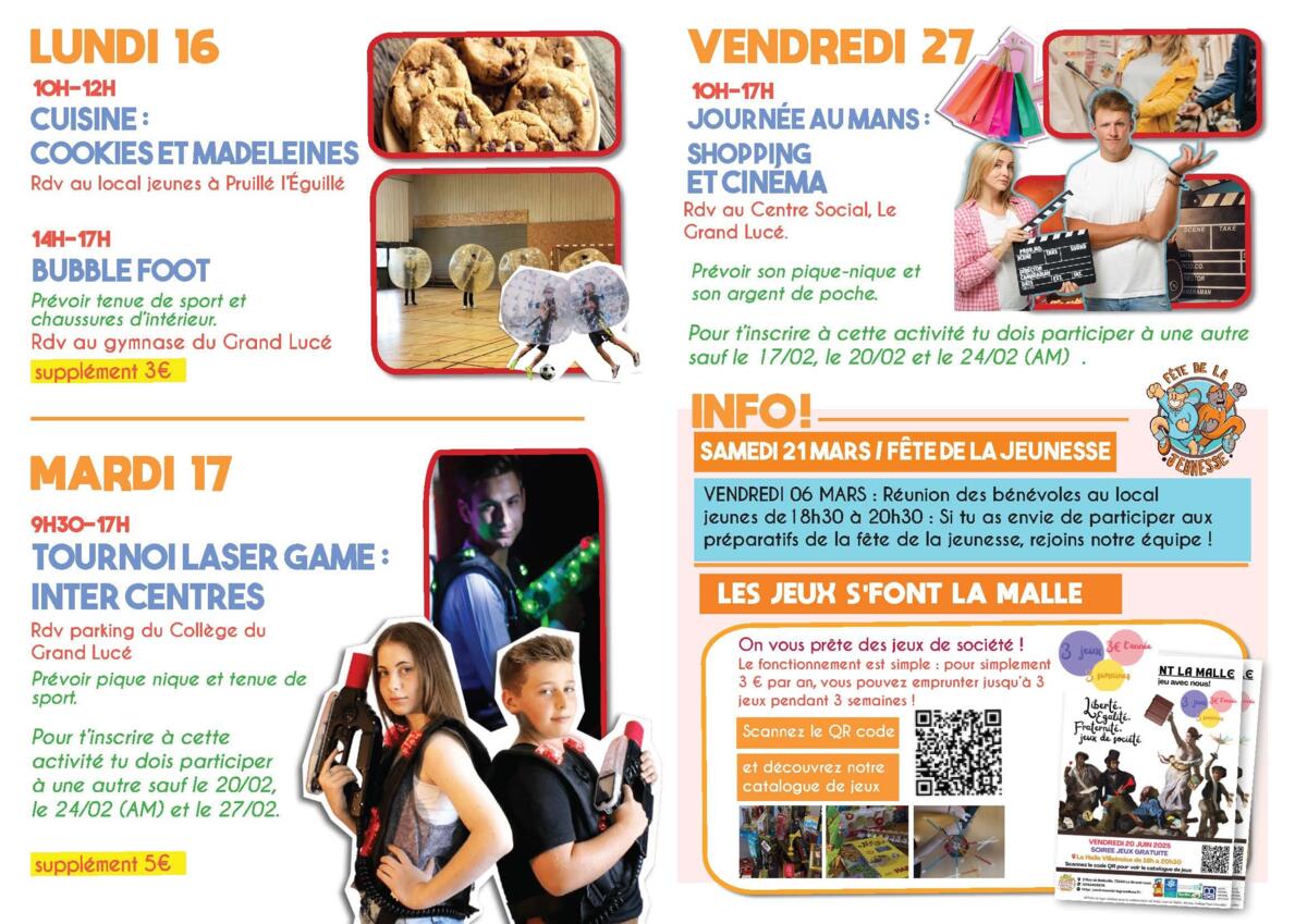 Programme des vacances de février pour les 11 - 17 ans. Début des inscriptions à partir du mercredi 21 janvier.