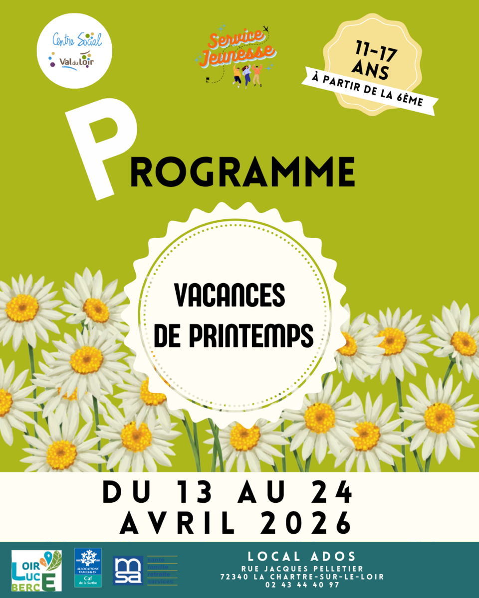 Programme des vacances de printemps au local ados