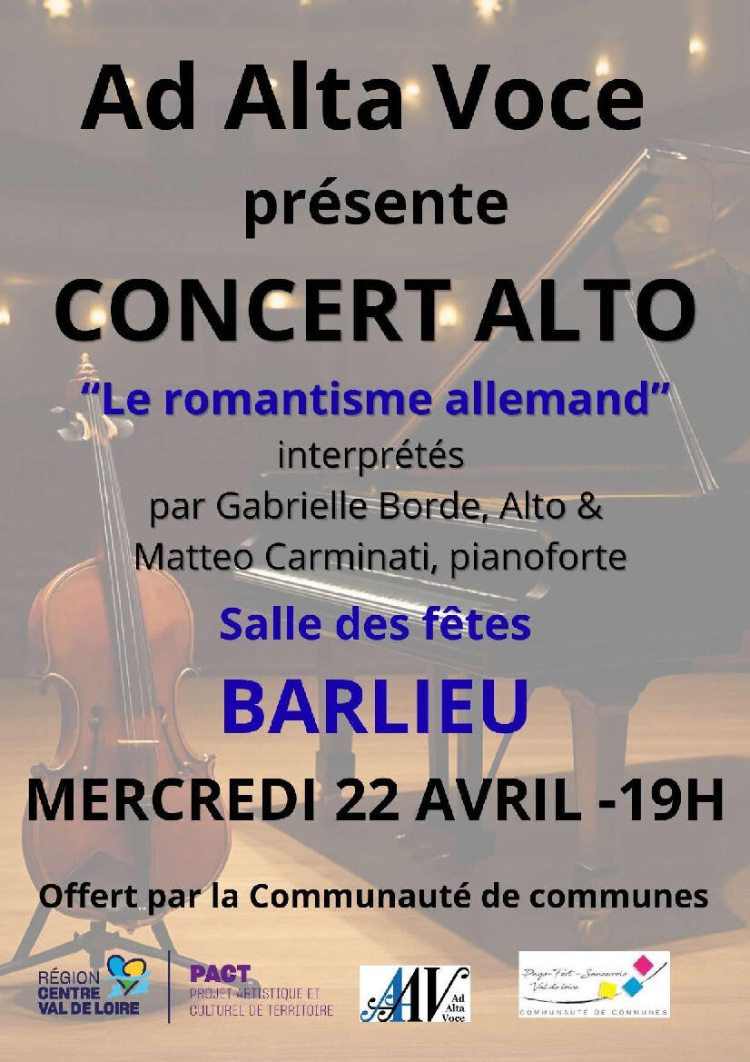 Entre récital piano, récital alto, opéra, concert lyrique présenté par Ad Alta Voce en présence de Matteo Carminati accompagné d'artistes pour nous faire vivre ce voyage en couleurs musicales.