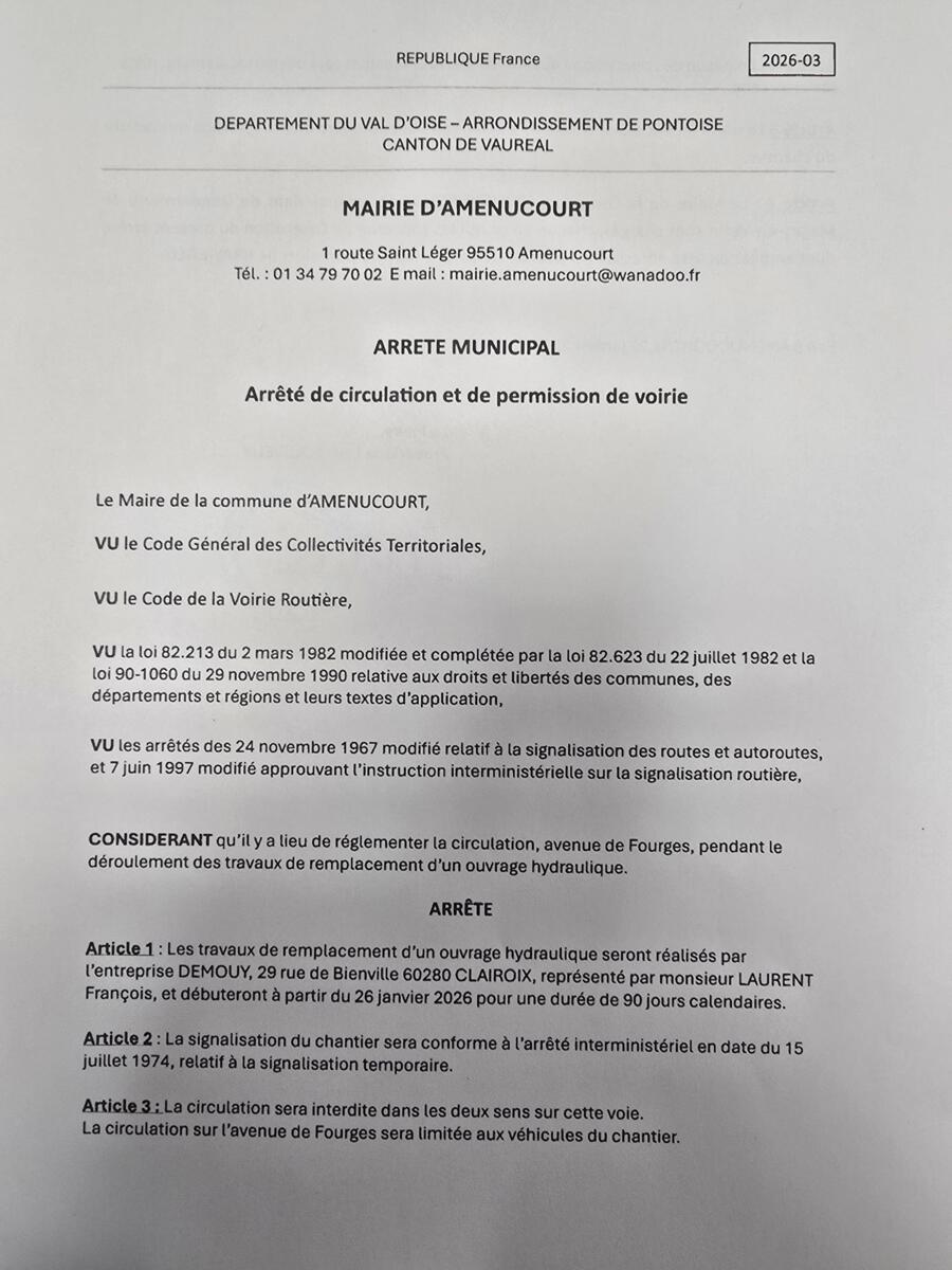 Les travaux de rénovation du petit pont de Fourges situé avenue de Fourges sur la commune d’Amenucourt ont débuté.
