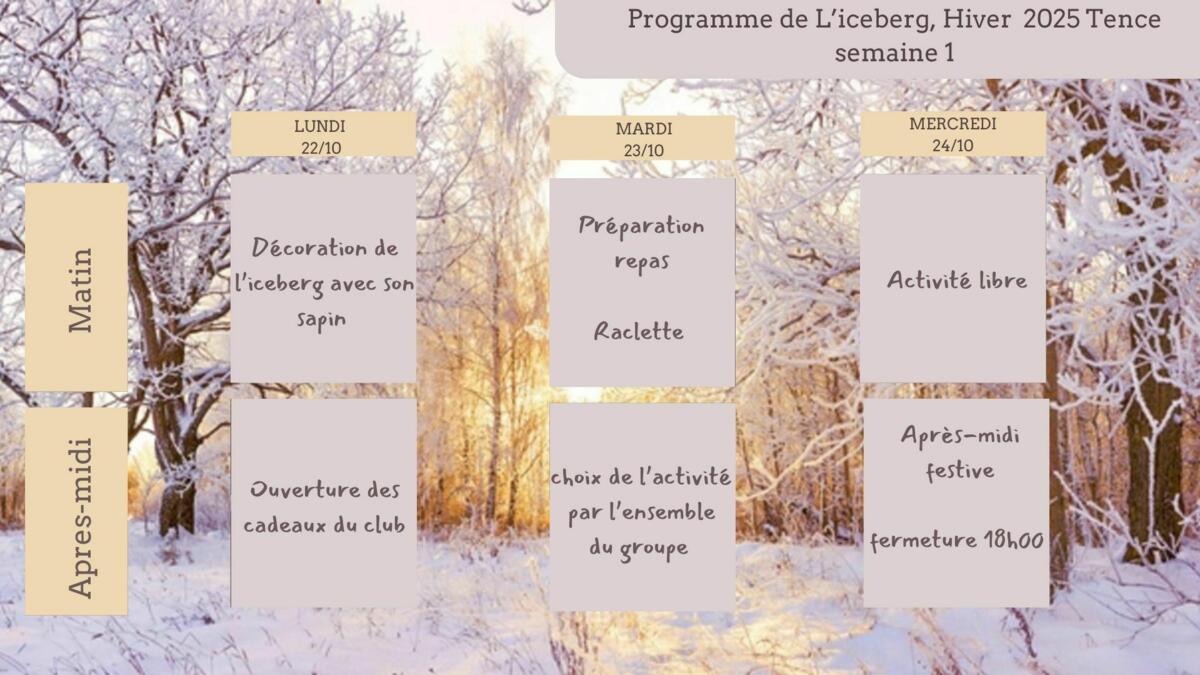 Programme de l'Iceberg pour les vacances de Noël 12/9/25 Programme du club ados de Tence pour les vacances de Noël.