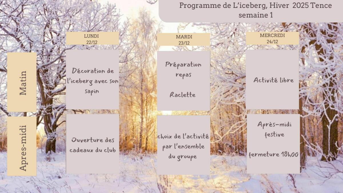 Programme de l'Iceberg pour les vacances de Noël 12/10/25 Programme du club ados de Tence pour les vacances de Noël.