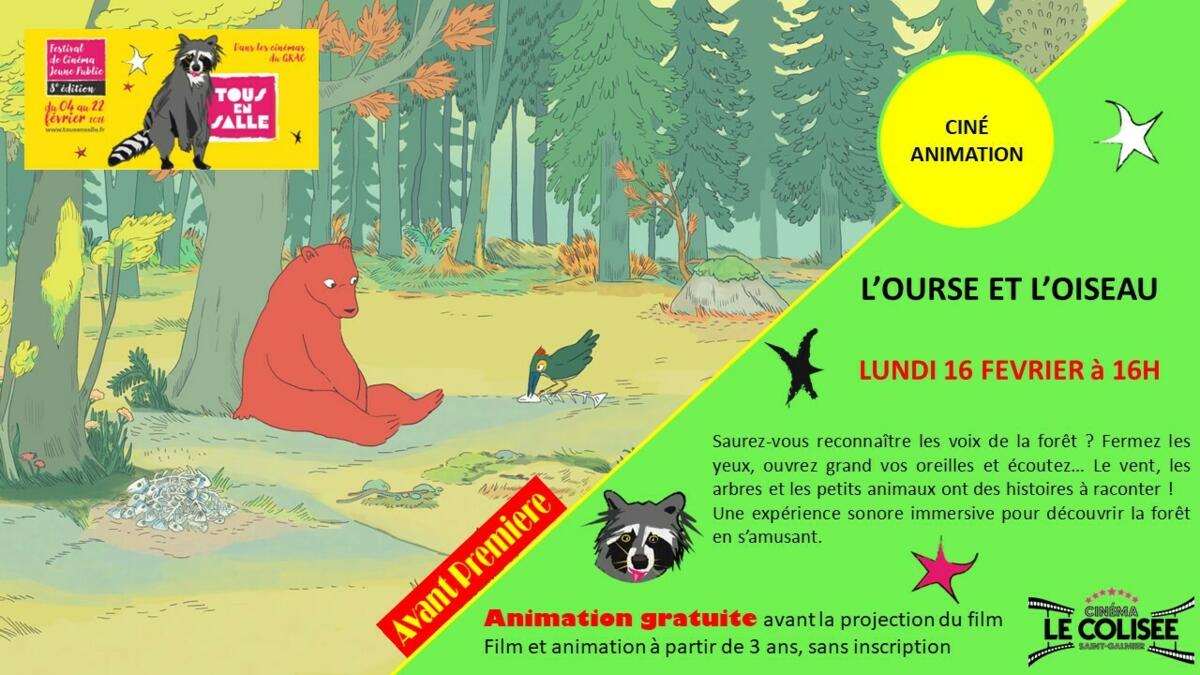 😘TOUS EN SALLE 🤩ANIMATION 🤩🐦L'ourse et L'oiseau 🐻🤩Lundi 16 Février à 16h00